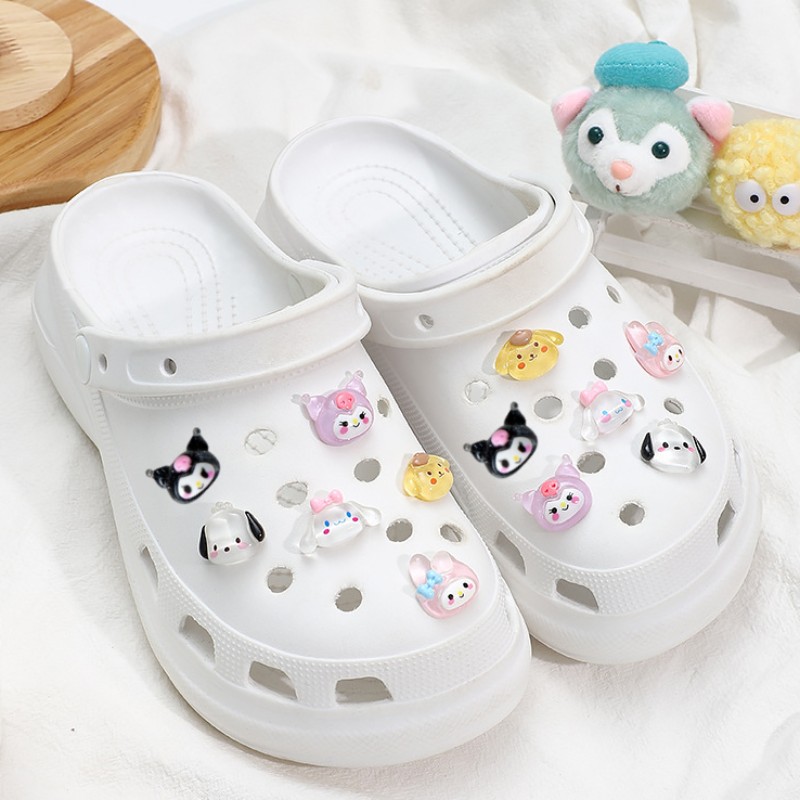 6pcs/set Button Shoes Sanrio Charme De Cristal Brilhante Kuromi Melody jibz Cinnamoroll Transparente Decoração De Sapatos Femininos