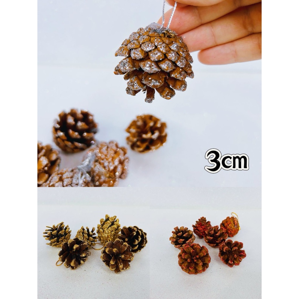 Pinha Natural Enfeite De Natal Glitter 3 Cm Kit 6 Pinhas Para Decorar Arvore De Natal Guirlanda
