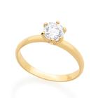 Anel Solitário Banhado A Ouro 18k Com Zircônia Folheado Noivado