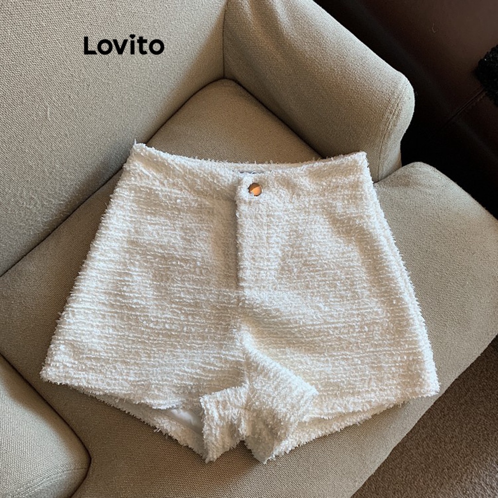 Lovito Shorts Femininos Básicos Elegantes Com Botão Simples E Zíper LNE20143 (Branco)