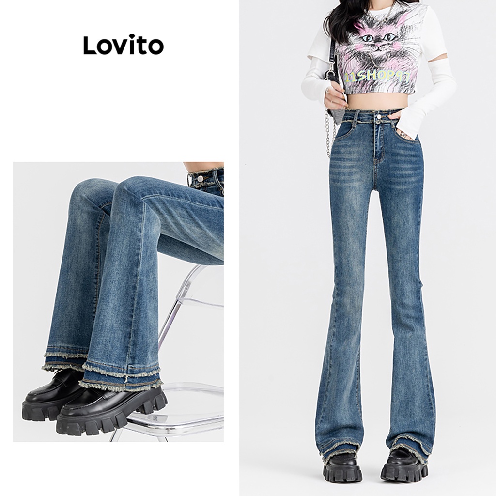 Lovito Jeans Casuais Com Botão Liso Frontal E Zíper Frontal Para Mulheres LNA41129