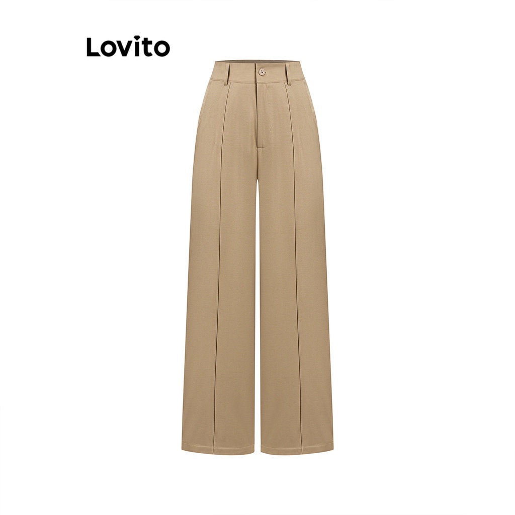 Lovito Calças Casuais Com Zíper E Botão Liso Para Mulheres LBL07151