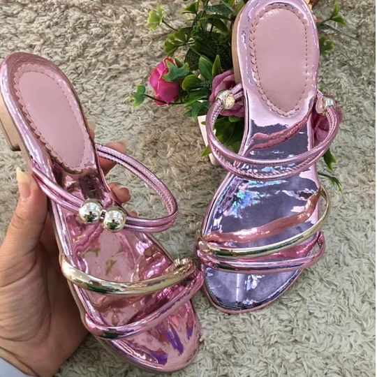 Sandália Rasteirinha Feminina Rasteira Metalizada com Traseira e sem Traseira chinelo de Brilho Tira de Brilho Confortável Percata Casual Dia a Dia Flat com Regulador Para Sair Moda Blogueira Barato Verão Básica 08754 Amery Shoes