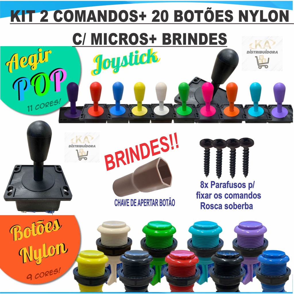 Kit 2 Comandos Aegir + 20 Botões Nylon P/ Fliperama Arcade Games Rasp Bartop