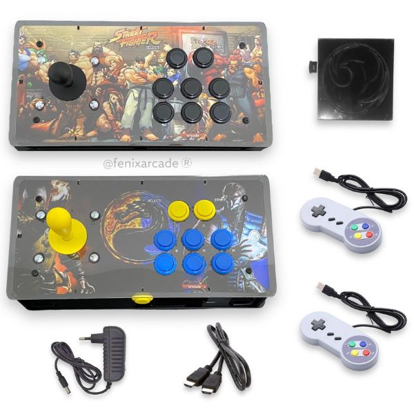 Fliperama Arcade - Kit de 2 Controles Joystick Slim Fenix Arcade em Acrílico - Modelo Mortal Kombat e Street Fighter - mais 2 Controles SNES Usb e 8 Botões de Comandos por Controle e 21.626 Jogos Retros Arcade Inst