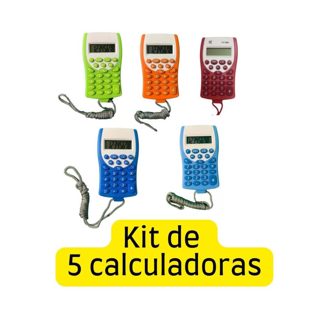 Kit 5 Mini Calculadoras de Bolso com Cordão 8 Dígitos Portátil Escritório Escola Colorida (Lee Home)