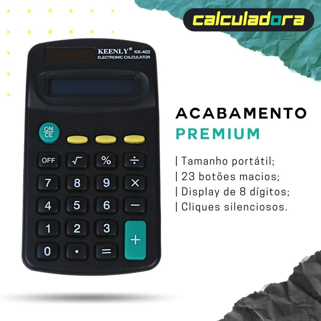 Mini Calculadora de Bolso e Mesa Portátil KK-402 com 8 Dígitos, 23 Botões e Teclas Silenciosas - MZ