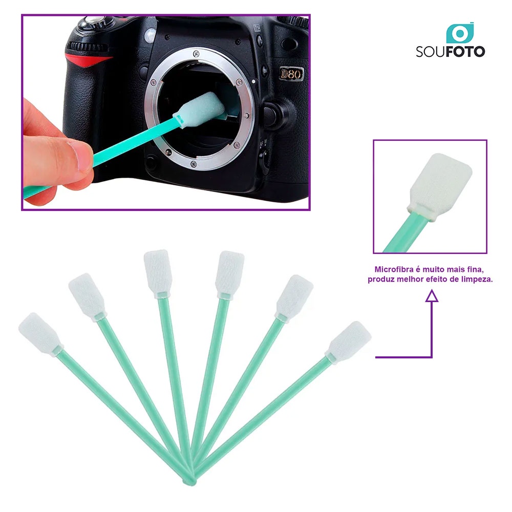 Kit com 6 Cotonetes para Limpeza de Sensor CCD CMOS de Câmeras Digitais Opticas Binóculos Telescópios KLC-07 Sou Foto