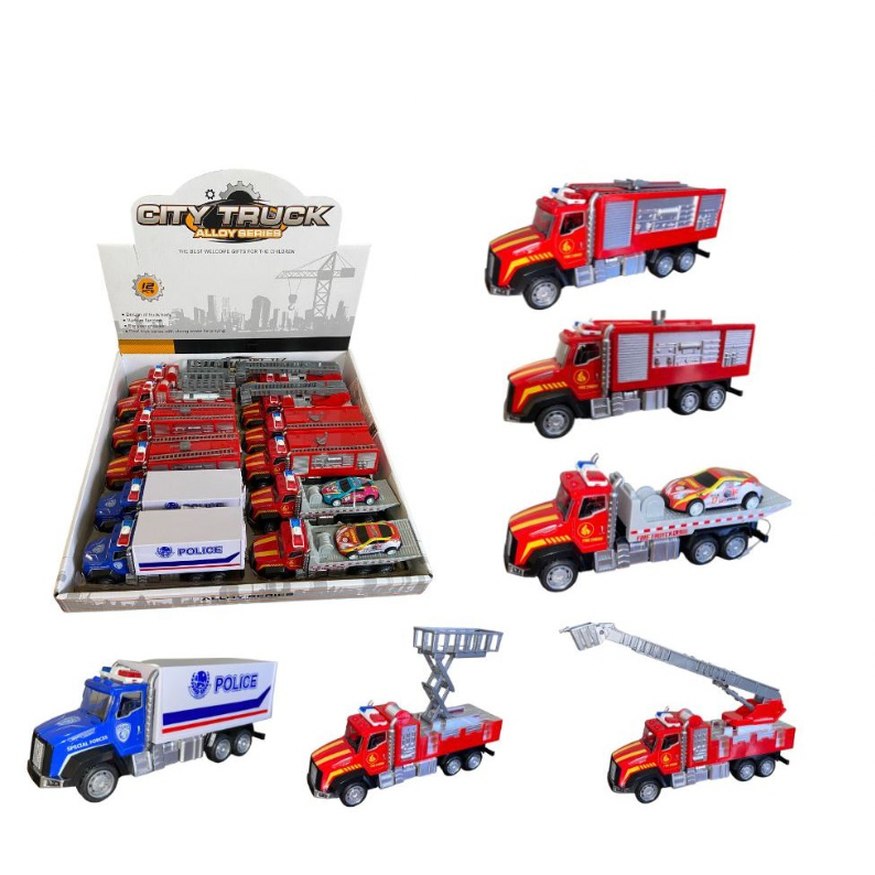 Caminhão De Fricção 17 Cm Carrinho Metal Coleção Bombeiro e Polícia Miniatura Construção, Fanwix