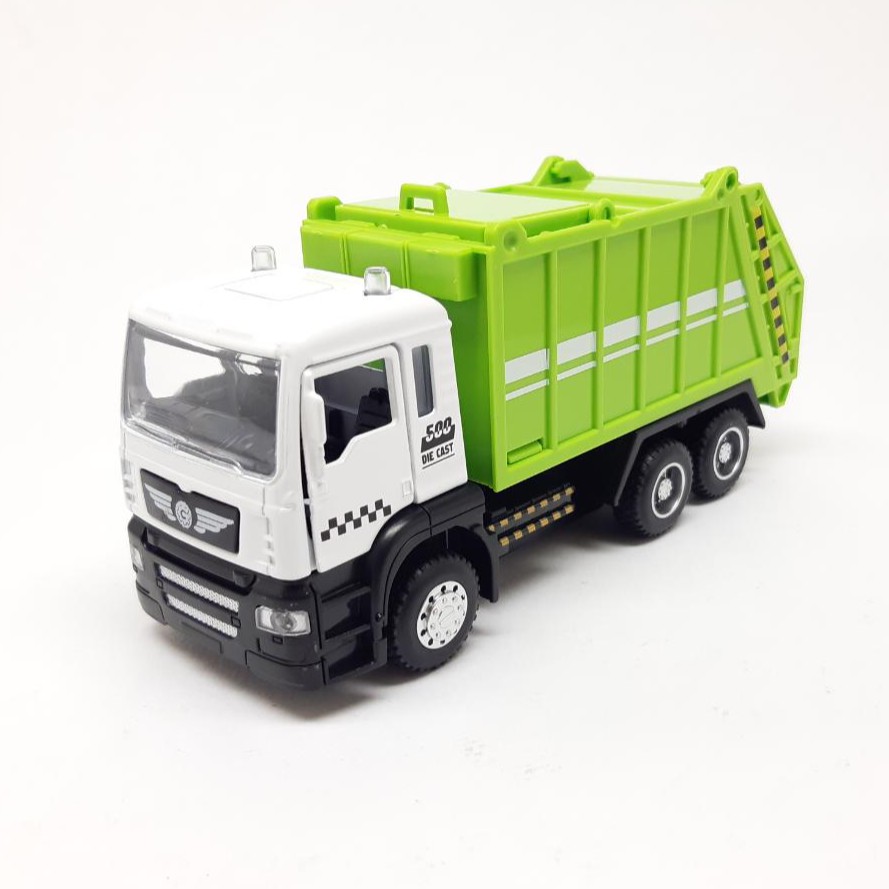 1 : 50 Modelo De Metal Fundido Diecast Saneamento De Brinquedo Caminhão De Lixo Miniatura Réplica Pull Back Com Som E Luzes