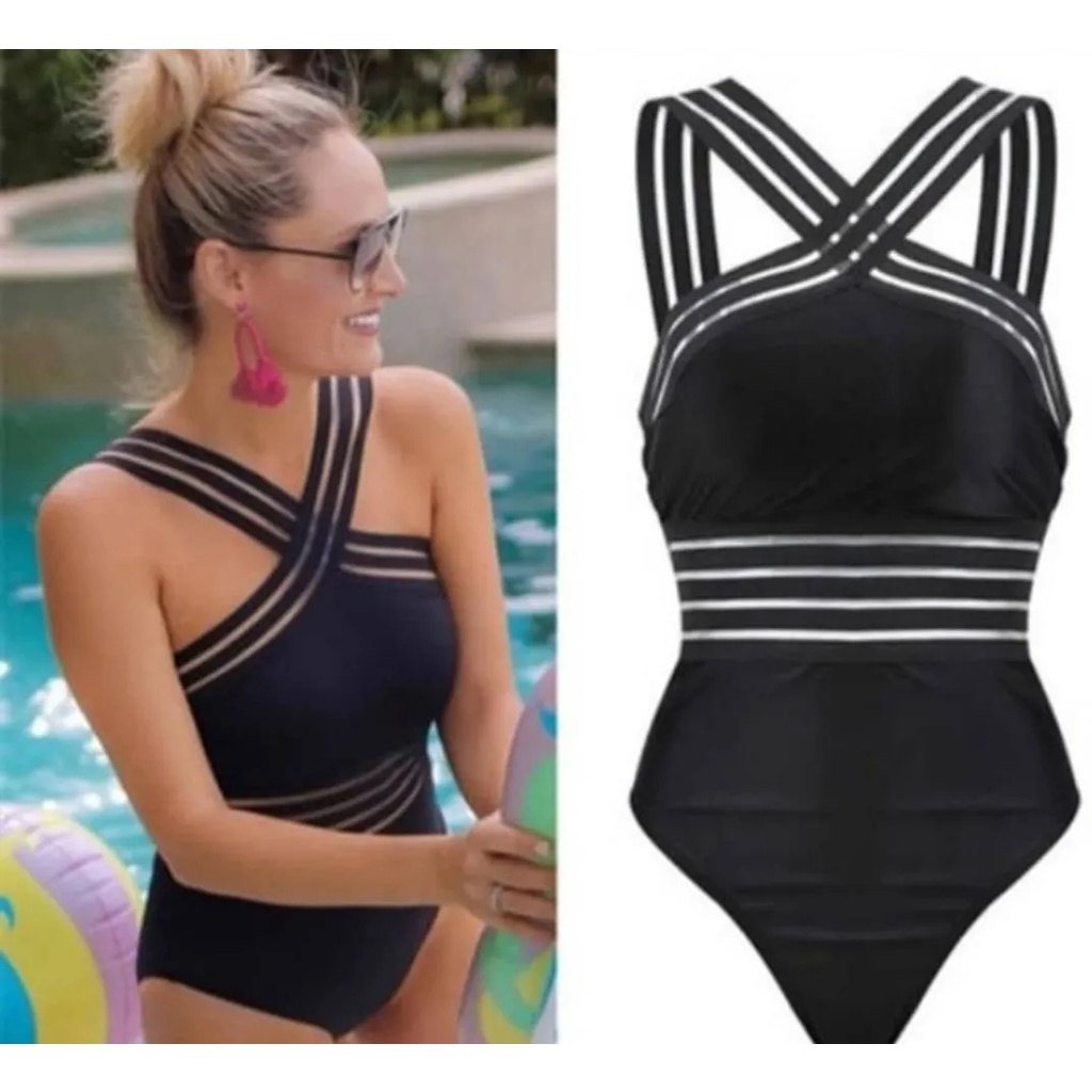 Maiô Com Bojo Body Feminino Detalhe Elástico Transparente Modela Cintura Super Luxoso