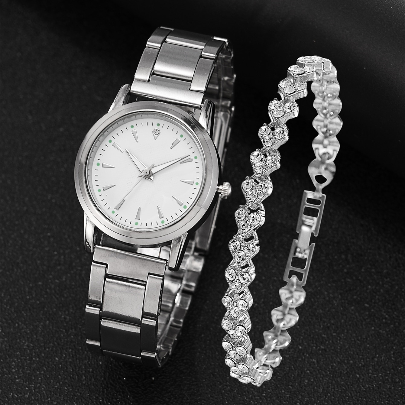 2 Pcs Lazer Mulheres Relógio Faixa De Aço Discagem Pulseira De Água Diamante De Quartzo
