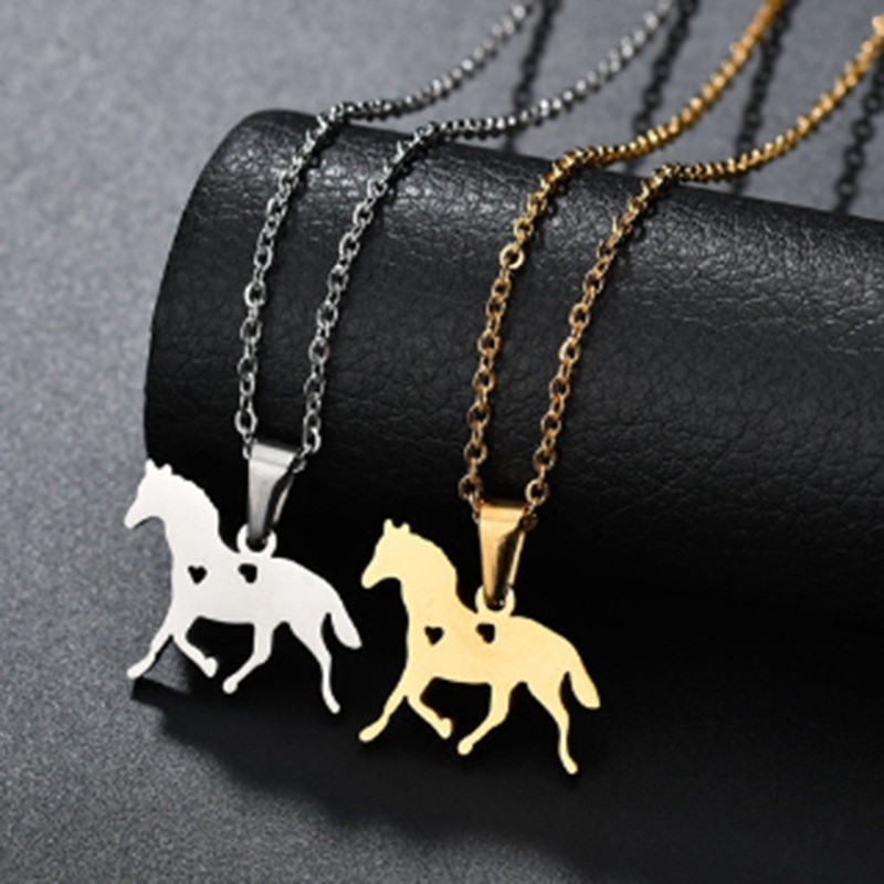 Aço Inoxidável Vintage Fashion Cartoon Cute Pony Pendant Pingente Feminino Colar De Titânio Acessórios De Jóias Para Festa De Halloween