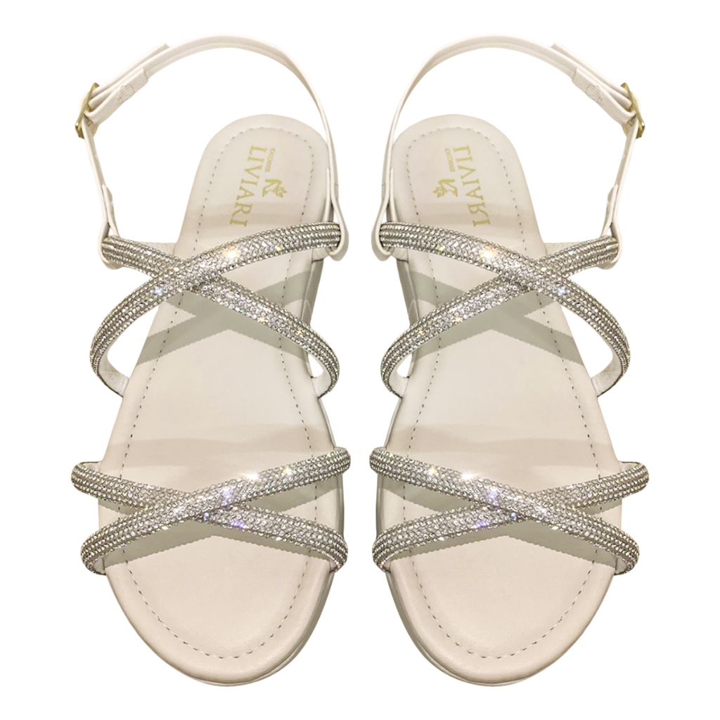 Sandalia Feminina Flatform Rasteira Nó Strass Tiras Cruzadas Brilho Glam Confortável Papete Original Promoção Gigil