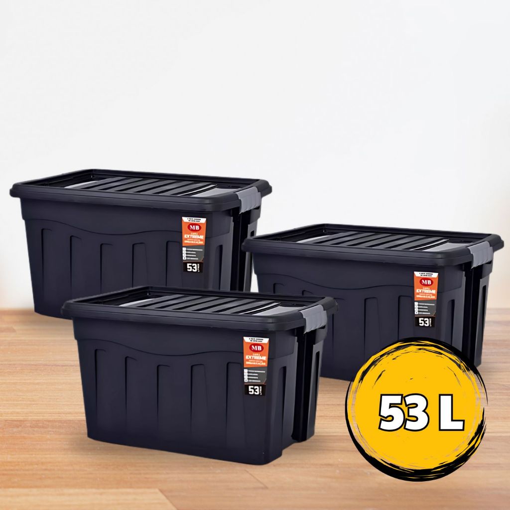 3 Caixas Organizadora Container Preta Com Tampa e Trava 53 Litros Cesto Organizador Preto