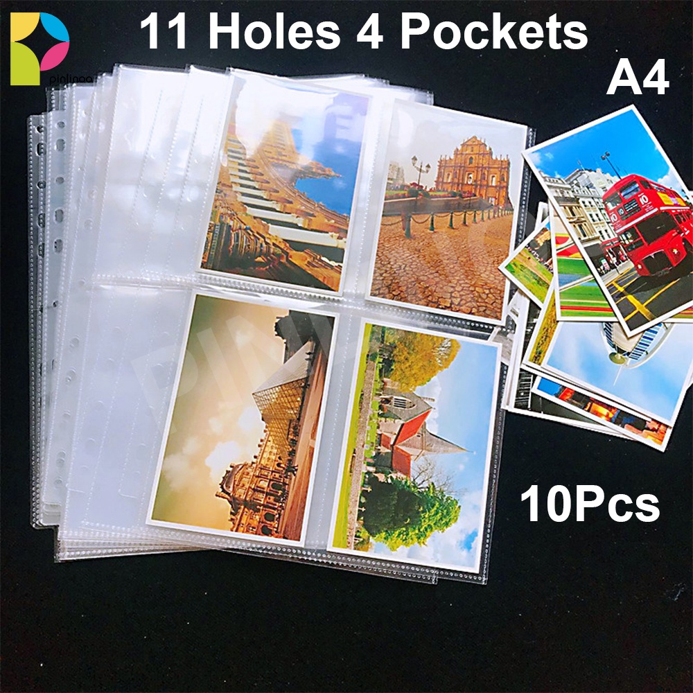 Pinlinoo A4 11-Ring 4 Pockets Sleeves Álbum De Fotos Páginas De Recarga 4 * 5.8 Inch Binder