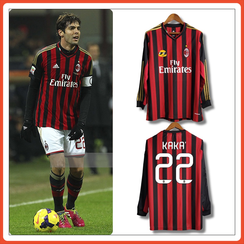 Retro futebol Jersey AC Milan 13/14 Camisa dos homens locais versão Home Kaka #22 de manga comprida de manga curta Jersey 2013 201411 JAUC