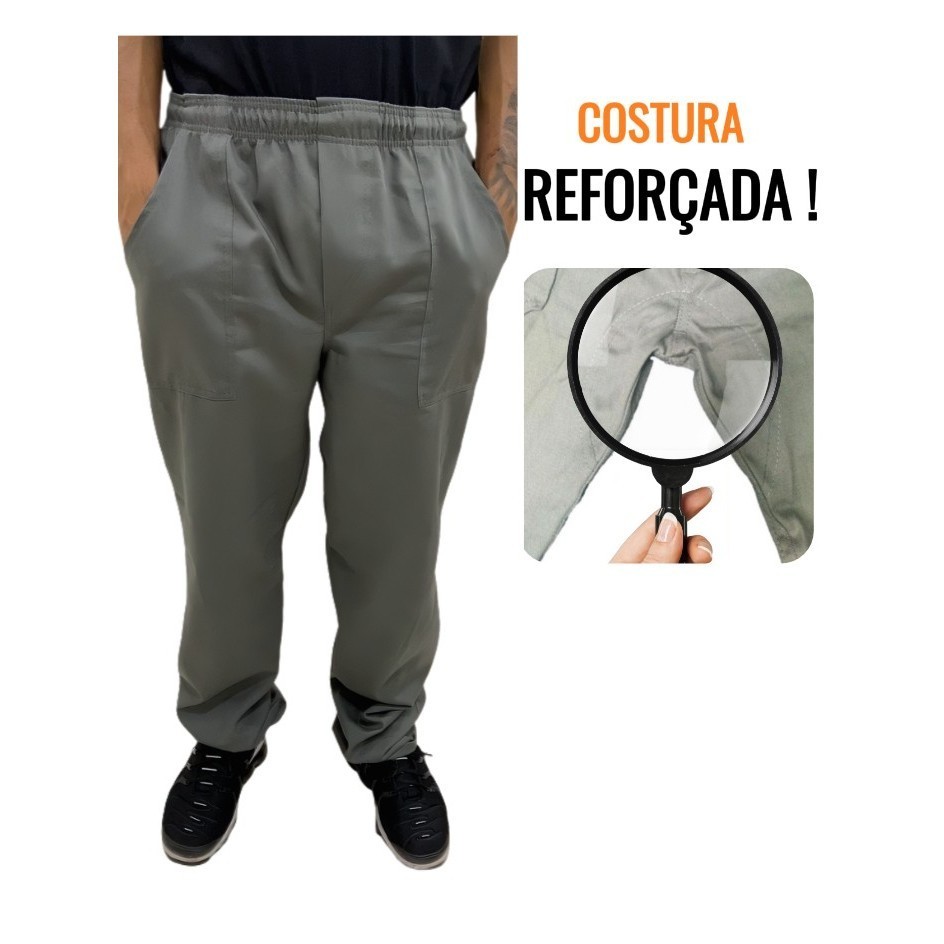 Calça Em Brim 100% Algodão Tecido Grosso Costura Reforçada Para Trabalho Padaria Pizzaria Açougue