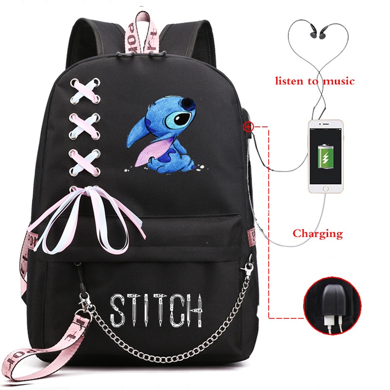 Mochila Recarregável Stitch De Grande Capacidade Para Estudantes