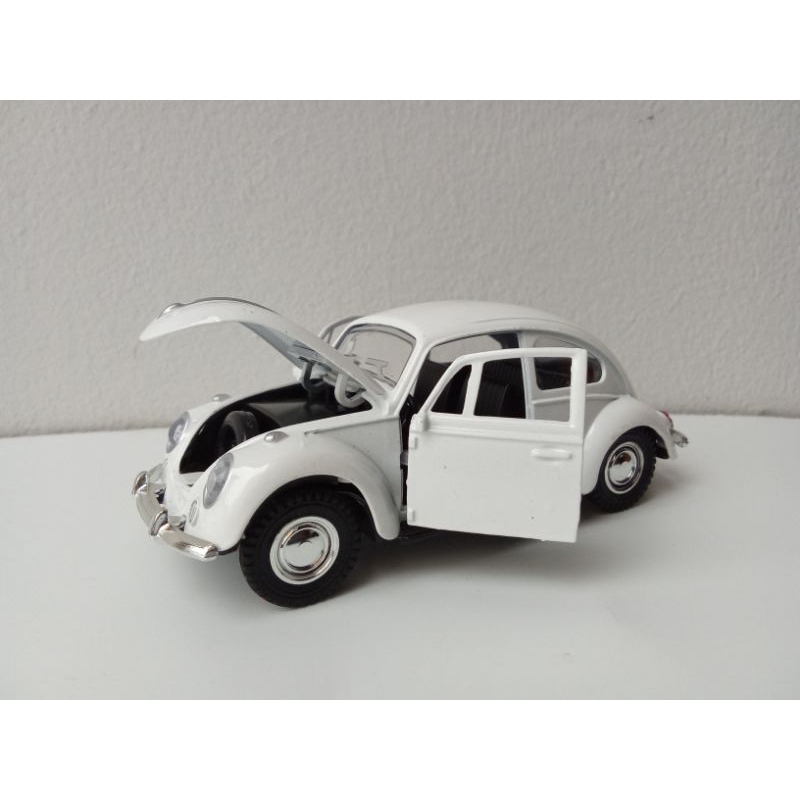 carrinho de ferro Fusca branco, miniatura de carro colecionável, abre portas e capo.