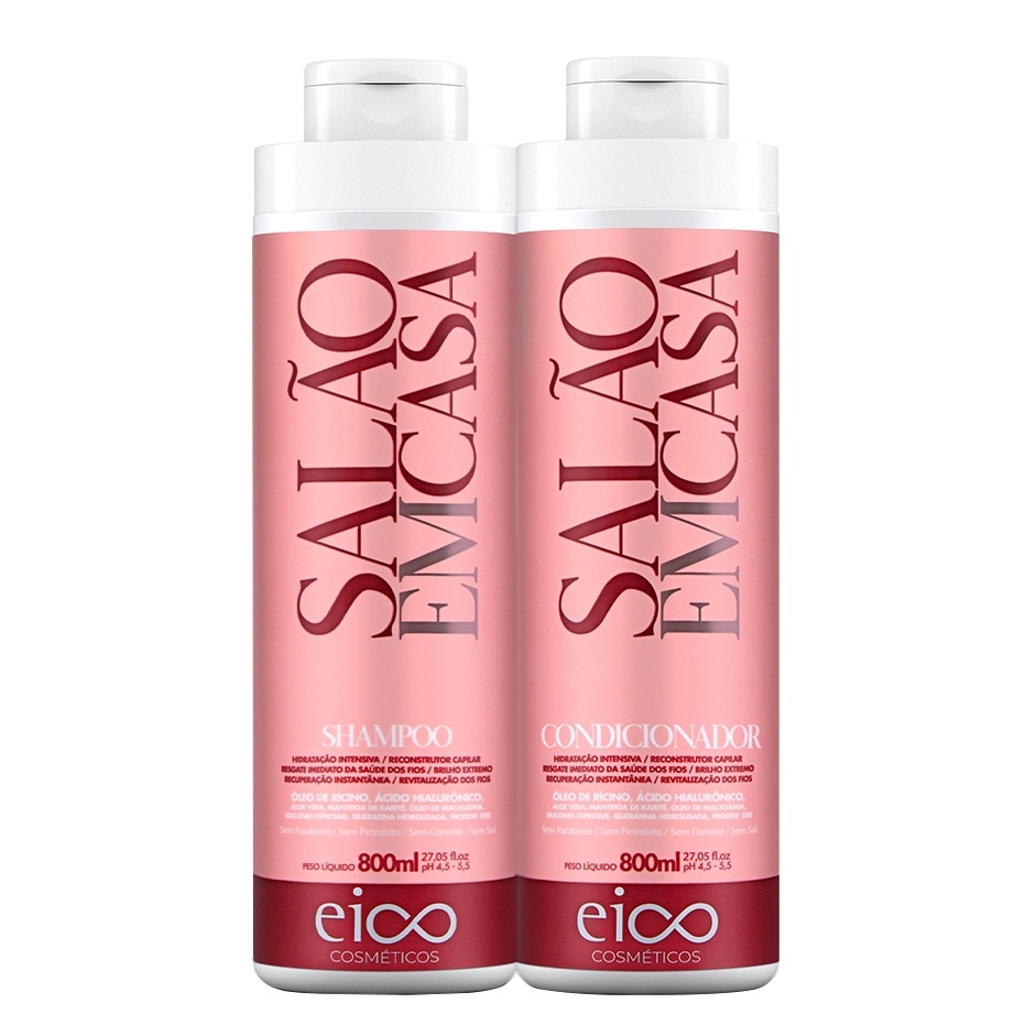 Kit Eico Tratamento Reconstrutor Capilar Salão Em Casa Shampoo Hidratação Sem Sal e Condicionador Leave-in 800ml Óleo de Rícino e Ácido Hialurônico