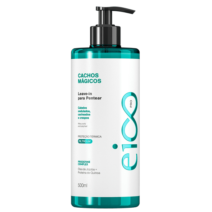 Eico Pro Cachos Mágicos Leave-in Creme de Pentear Proteção Térmica 500ml Cabelos Ondulados Cacheados Crespos