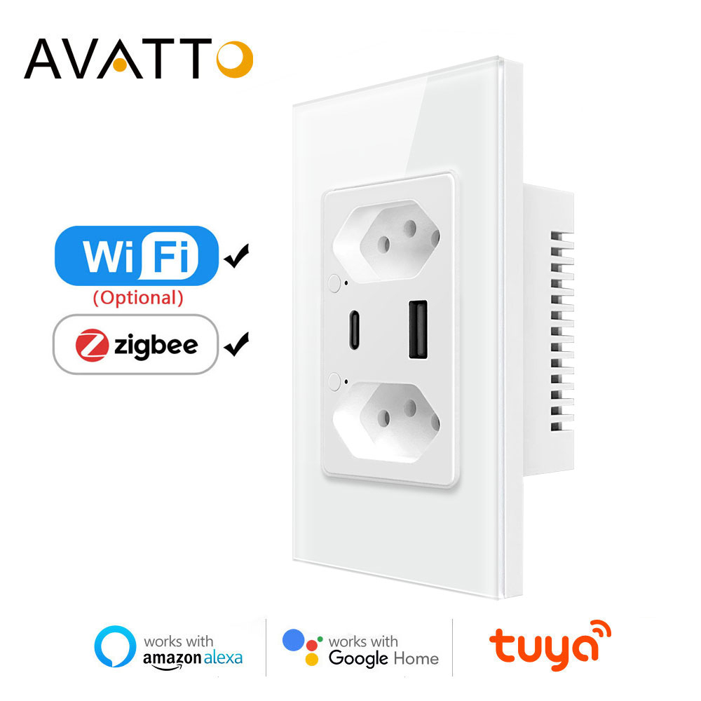 AVATTO Tuya WiFi/ZigBee Tomada De Parede Brasileira Inteligente 16A Porta USB Tipo C Saídas De Controle individual Plug Work Para Google Home/Alexa