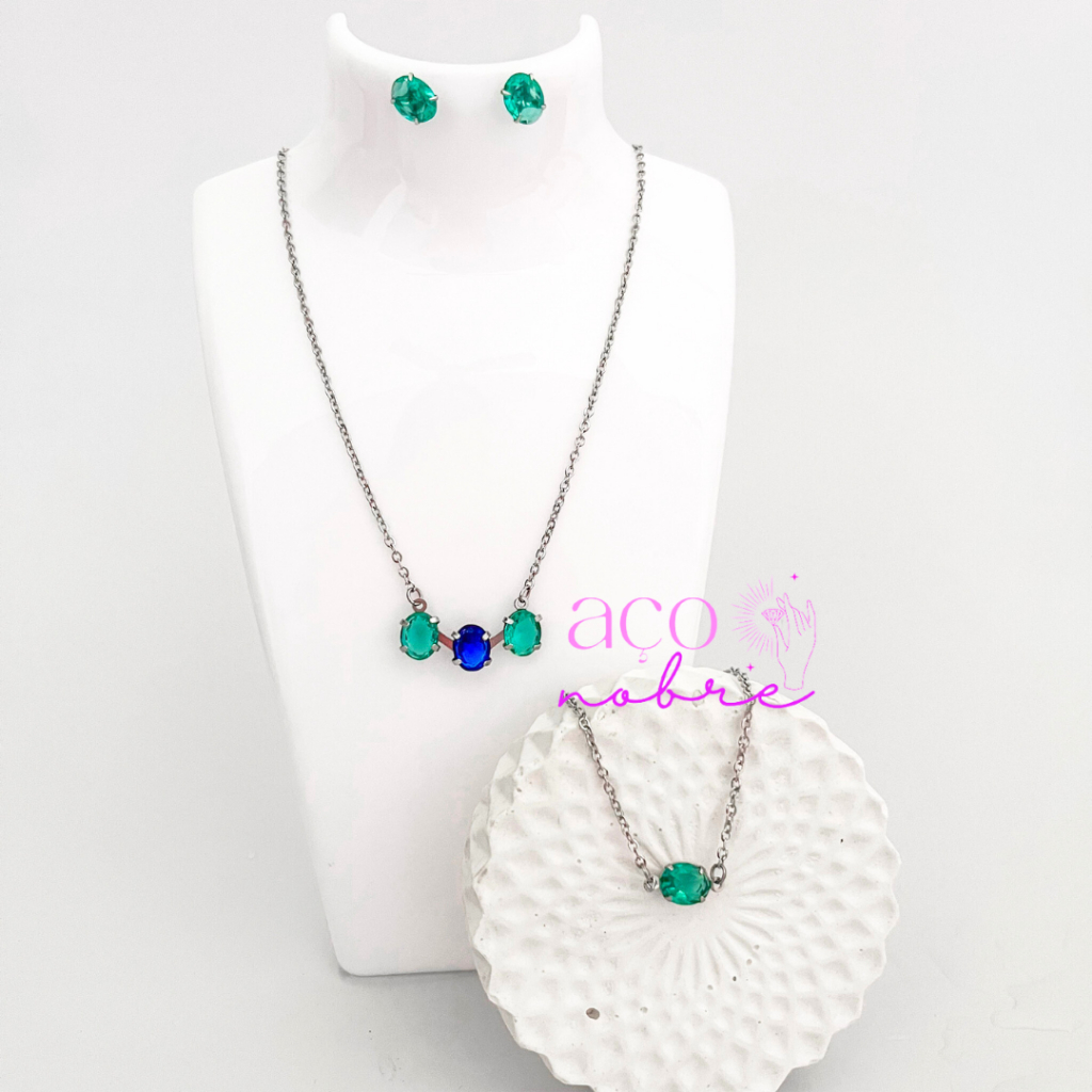 Conjunto De Cristais Em Aço Inox Colar Em Aço Inox Pulseira De Aço inox Colar Para Festa Colar De Zircônias Colar Elegante Joias Em Aço Inox Cristal