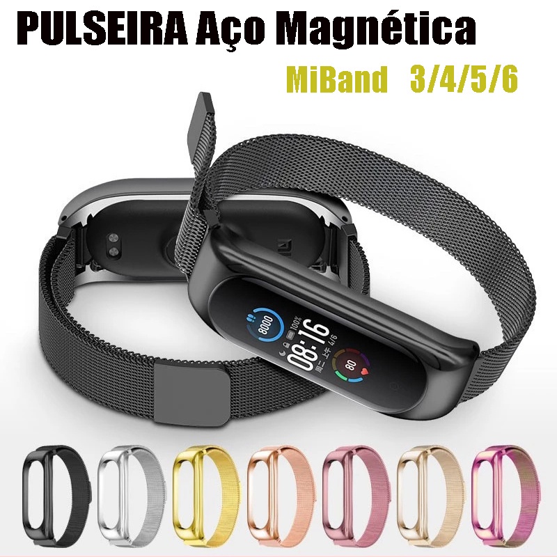 pulseira de metal magnética para Mi Band 3/4/5/6 - estilo em aço inoxidável