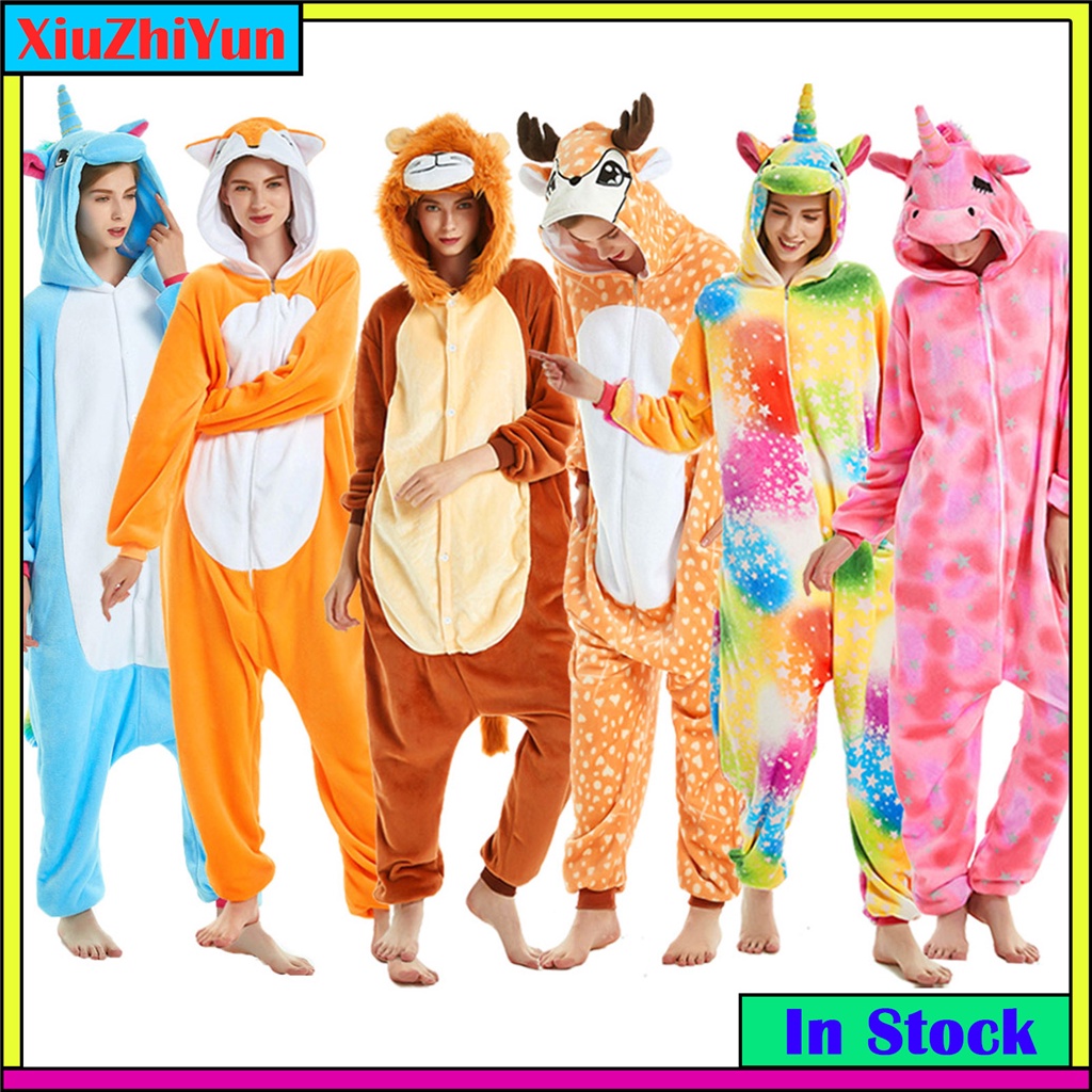 Roupa De Noite Feminina Unissex Inverno Raposa Leão Veado Desenho Animado Infantil Anime Fantasias Adultos Pijama De Flanela