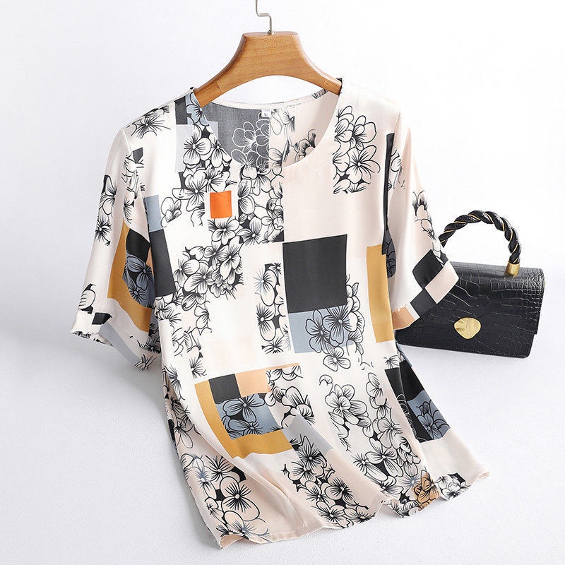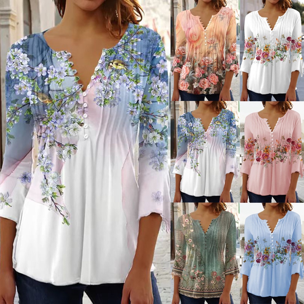 [12.12 Menor Preço]Camiseta Casual Feminina De Verão Com Decote Em V Camisetas De Pescoço Senhora Floral Tamanho Plus S-5XL