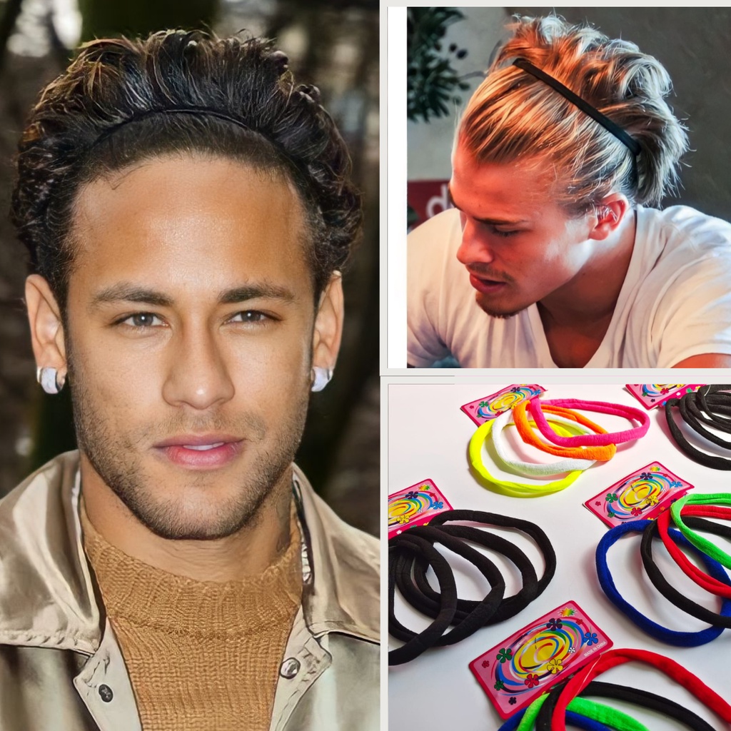 Faixa Fina de Cabelo Masculina Esportiva Xuxinha Grande Black Xuxa Elástico (XC12)