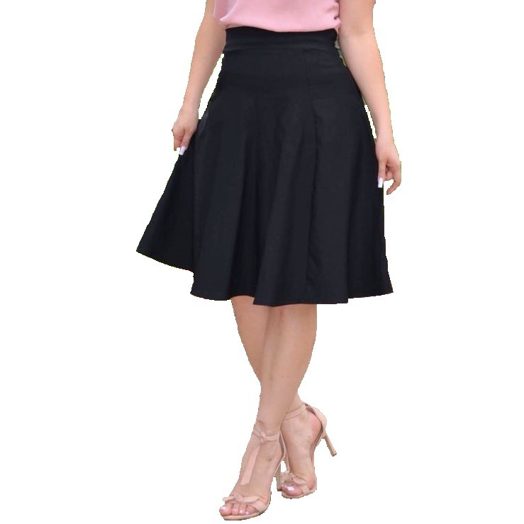 Saia godê rodada Midi para evangélica moda cristã modesta preta