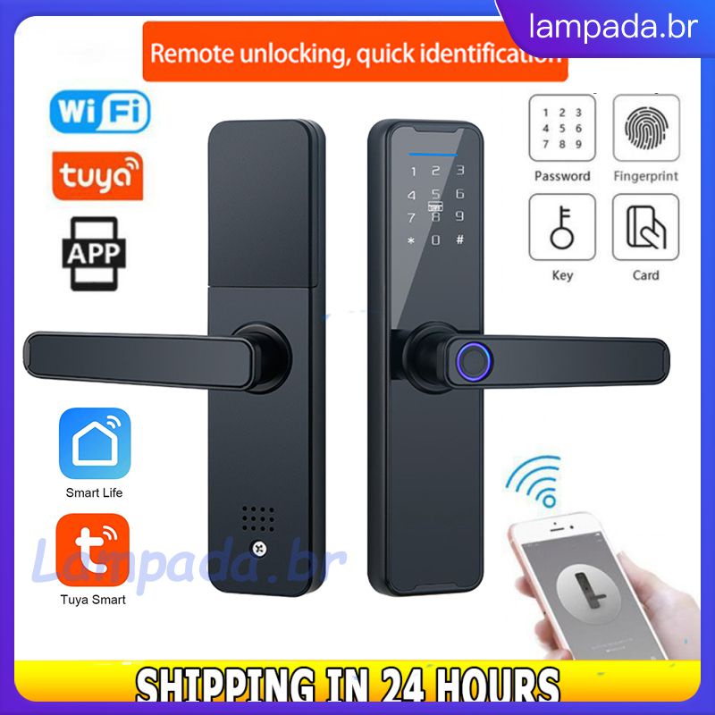 2023 novo Tuya Wifi Fechadura Da Porta Eletrônico Inteligente Com Biométrica De Impressão Digital Smart Card Senha Chave De Desbloqueio Lampada_br