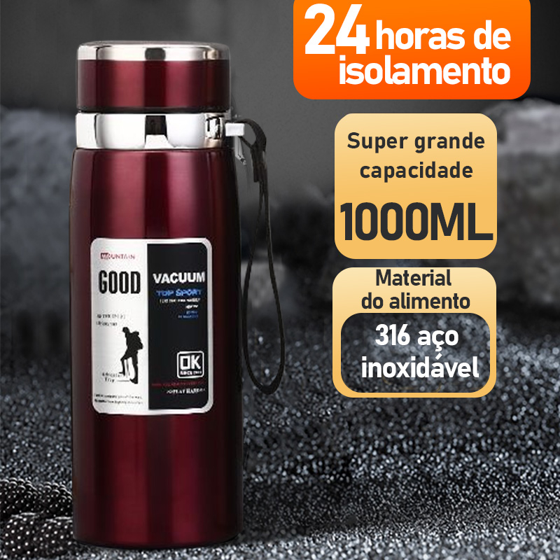 Garrafa Térmica 1L e 1,5L Aço Inox Trava Café Água Suco Leite Corrida Acampamento