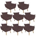 Kit 08 Poltrona Cadeira Decorativa Opala Sala de Estar Recepção Consultório Escritório Suede Marrom - Damaffê Móveis