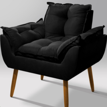 Poltrona Cadeira Decorativa Opala Preta Suede Sala de Estar