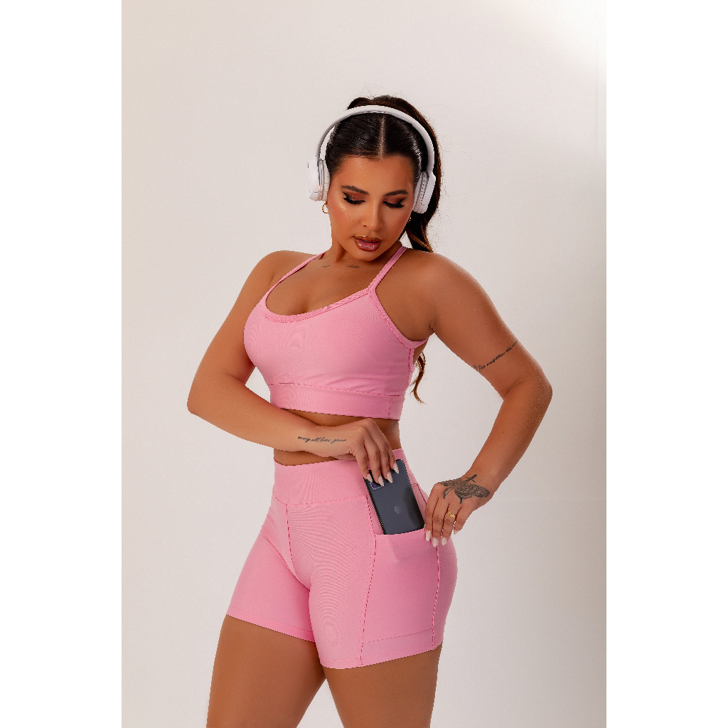 Conjunto Academia Short com bolso + Top Suplex Fitness Short Cós Alto Meia Coxa
