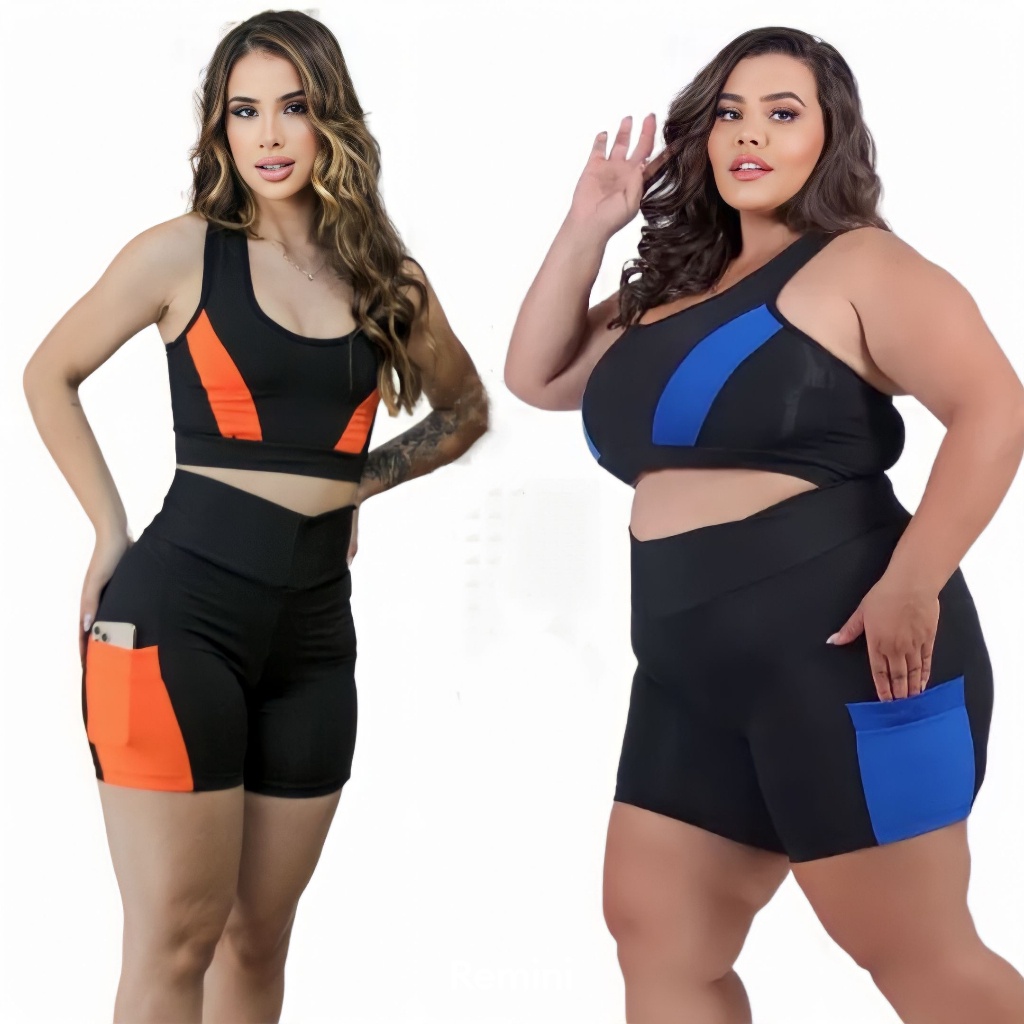 Conjunto Fitness Top e Short com bolso lançamento PLUS SIZE G GG XGG EXGG 40 ao 54