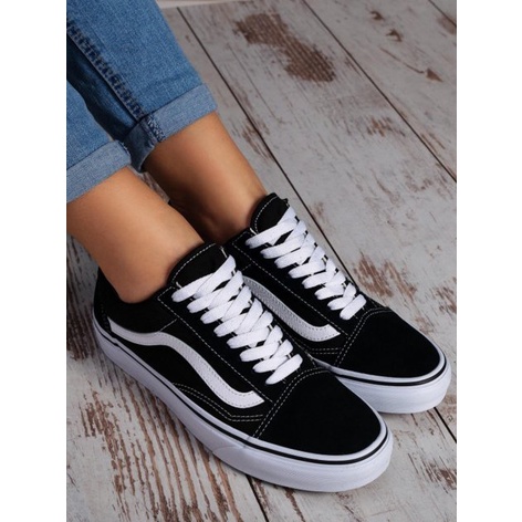 Tênis Feminino V-Vans Casual Old Skool Preto e Branco