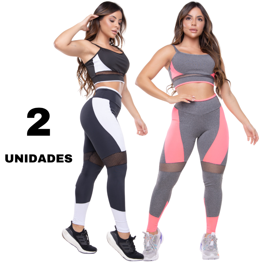 Kit 2 Conjunto Fitness Calça Legging e Top Leg Roupa de Academia