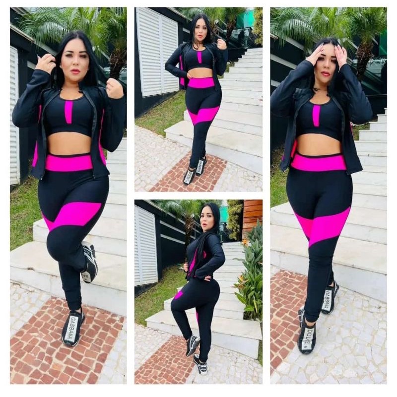 Conjunto de Academia Suplex Kit Jaqueta Top Calça Legging Moda Fitness