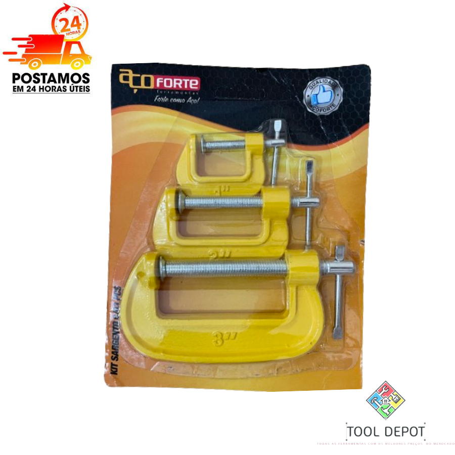 KIT GRAMPOS TIPO C 3 PEÇAS JOGO MARCENEIRO SARGENTO COMPLETO PROFISSIONAL 1 2 3 POLEGADAS