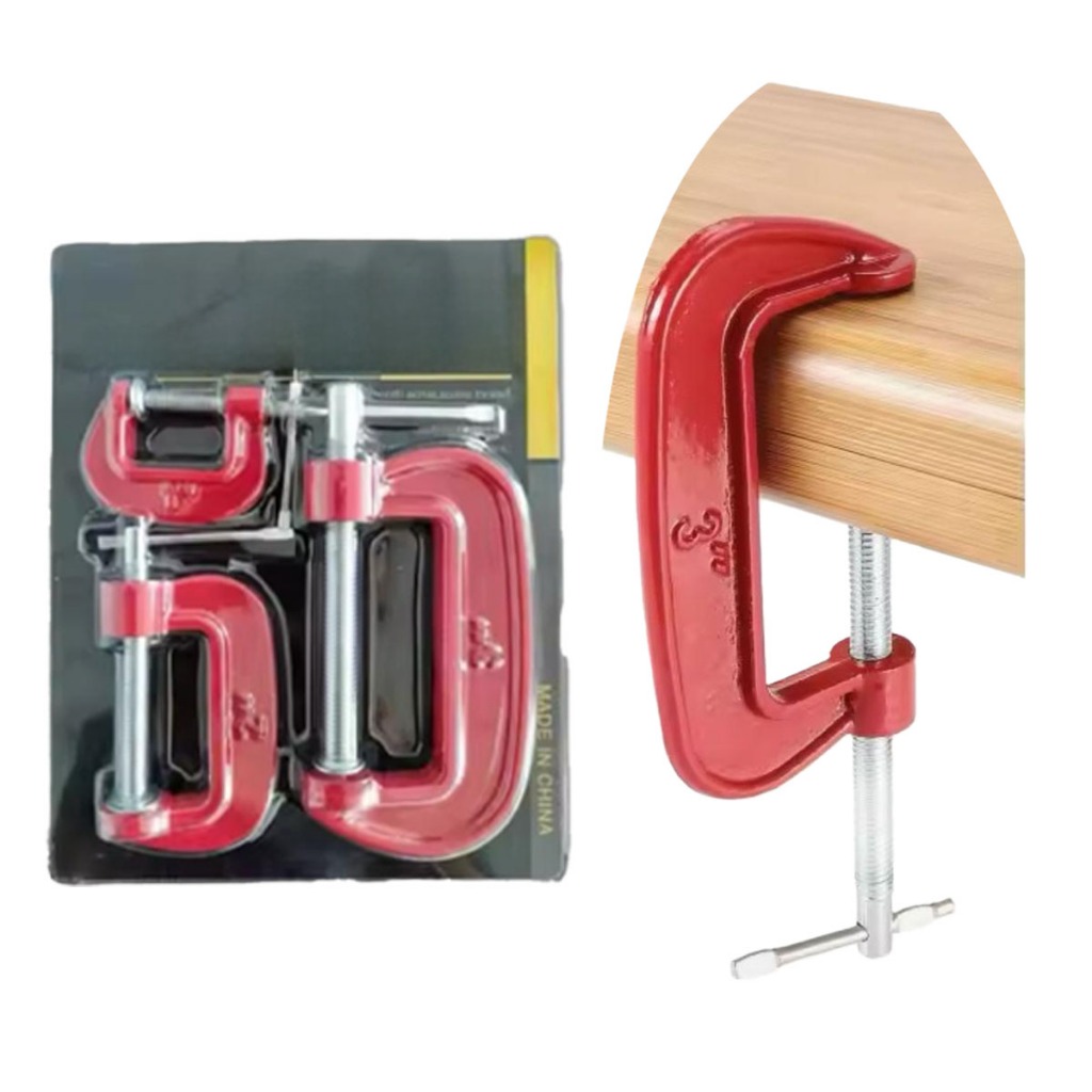 Kit Grampos Tipo C 3 Peças Jogo Marceneiro Sargento Completo Profissional 1 2 3 Polegadas