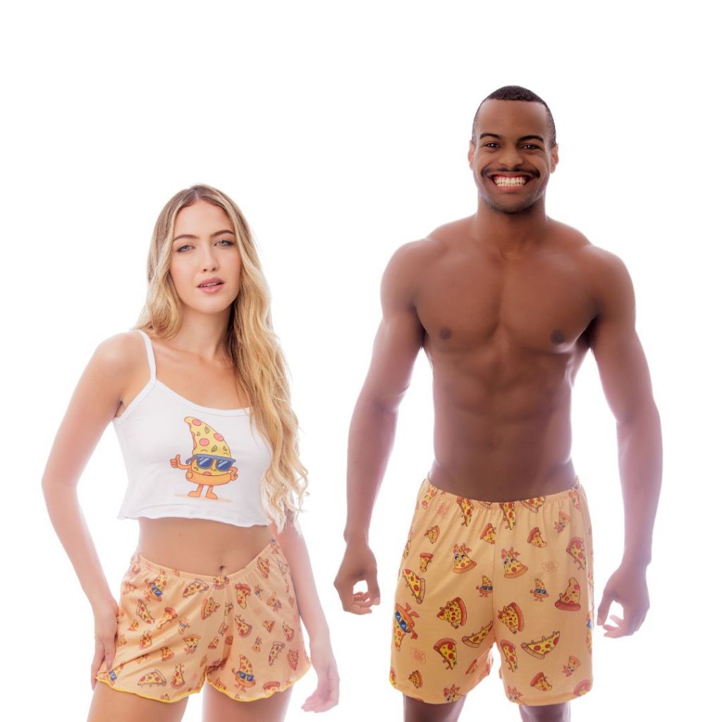 CONJUNTO DE PIJAMA VIRGÍNIA PIZZA - SHORT DOLL FEMININO E SAMBA CANÇÃO MASCULINO