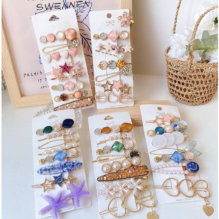 KIT 6 Clipe Simples personalizados Liu Haibian Ins Vermelho Net Pérola De Cristal De Volta Cabeça Superior