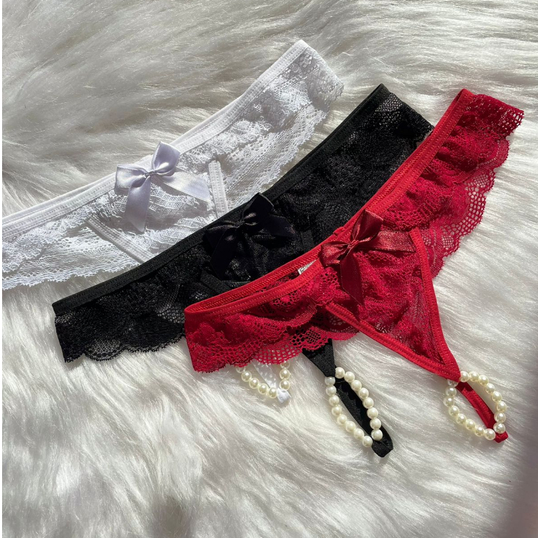 KIT 2 Calcinha Tailandesa Fio Dental Com Pérolas Estimuladoras Sex Shop Em Renda