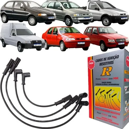 Kit Jogo Cabo Marelli e Vela Ngk de Ignição Original Fiat Uno Palio 500 1.4 8v Fire Evo Flex MPI