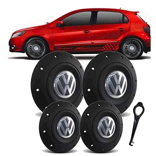 Jogo com 4 Calotas Centro Roda Ferro VW Amarok Aro 13 14 15 4 Furos Preta + Chave e adesivo