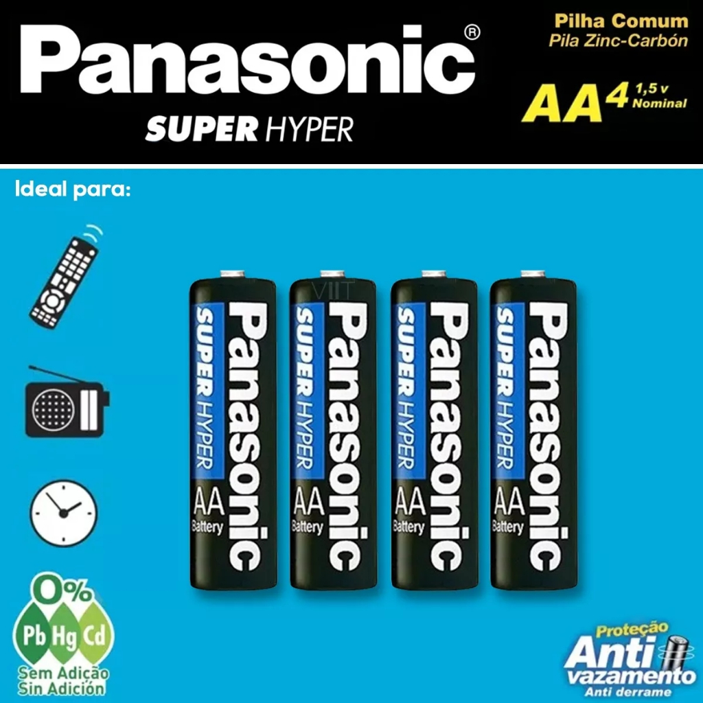 Pilha Pequena Comum AA Panasonic Super Hyper Cilíndrica 1,5V Original Kit com 8/12/16/20/24 unidades